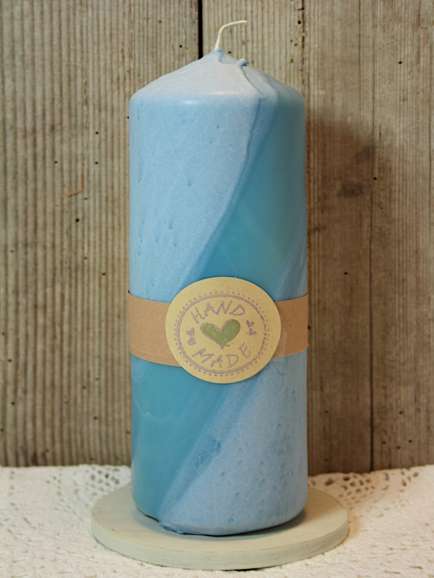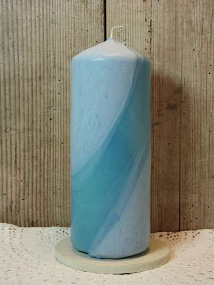 Handgearbeitete veredelte Kerze mit einem Hauch von Individualität. Jede Kerze ist ein Einzelstück mit einer lebendigen Oberfläche, die die Kerze zu etwas Besonderem macht. Die Kerzen werden von Hand gestaltet und poliert.