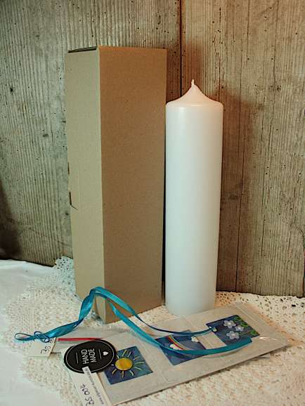- weiße Kerze mit den Maßen: 300 mm x 60 mm