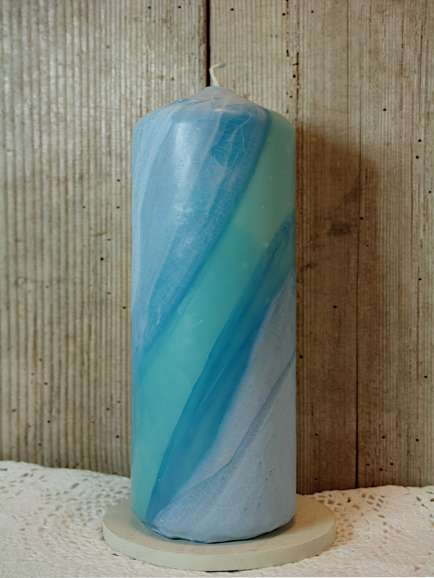 Handgearbeitete veredelte Kerze mit einem Hauch von Individualität. Jede Kerze ist ein Einzelstück mit einer lebendigen Oberfläche, die die Kerze zu etwas Besonderem macht. Die Kerzen werden von Hand gestaltet und poliert.