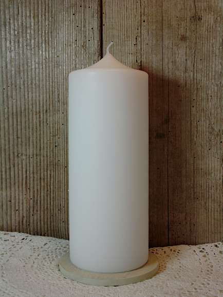 Weiße Stumpenkerze mit den Maßen 24 cm x 8 cm. (H/D) Qualitätskerze aus Bayern mit RAL Gütesiegel.