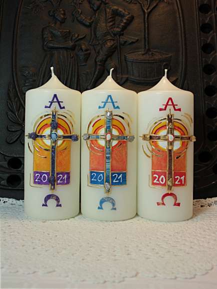 Sie brauchen eine andere Kerzengröße oder Kerzenfarbe oder wünschen sich andere Farben beim Motiv, dann nehmen Sie einfach Kontakt mit uns auf.