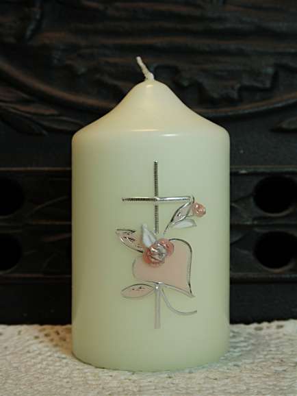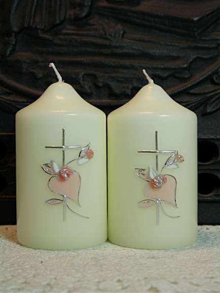 Gastkerze mit Herz und schlichtem Kreuz. Der Preis bezieht sich auf 1 Stück.