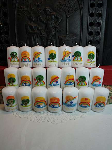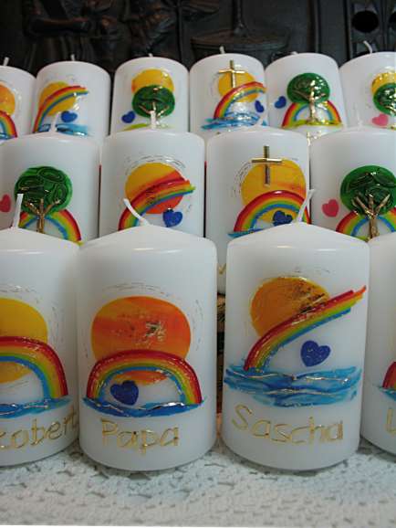 Sie brauchen eine andere Kerzengröße oder Kerzenfarbe oder wünschen sich andere Farben beim Motiv, dann nehmen Sie einfach Kontakt mit uns auf.