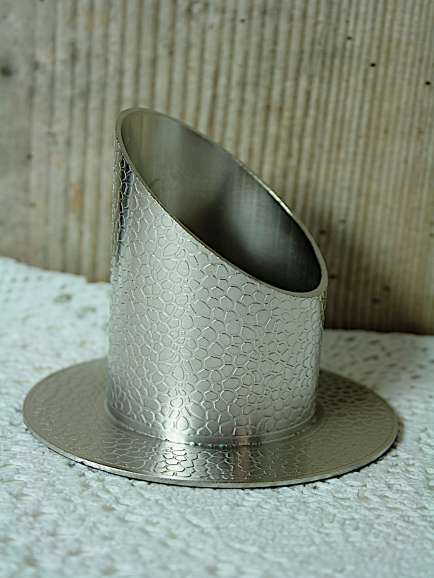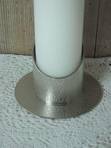 Silberfarbener Kerzenröhrenständer aus Messing (vernickelt) geeignet für Kerzen mit einem Durchmesser von 40 mm. Der Röhrenkerzenständer hat eine leichte Textur und wirkt dadurch sehr edel.