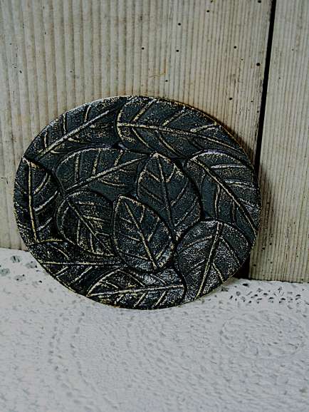 Kerzenteller mit ausgefallenem Blattmuster für Kerzen bis zu einem Durchmesser von 80 mm.